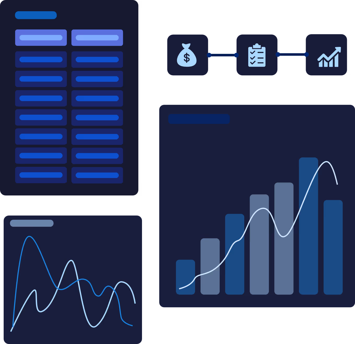 Final datasets are turned into interactive data charts, reports, and forecasts.
